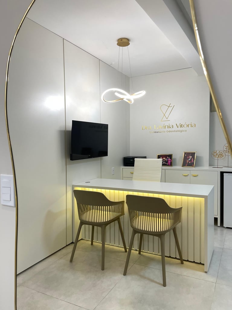 Nosso consultório oferece um ambiente acolhedor e confortável para lhe receber. Venha cuidar do seu sorriso com tranquilidade e qualidade.